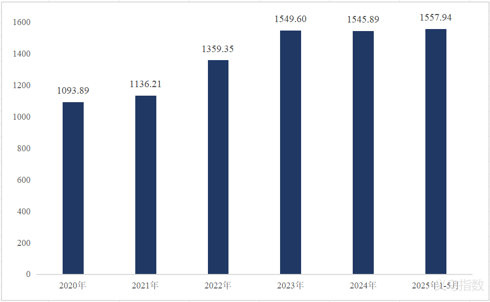 According to the data from Yiwu Index, from 2020 to 2024, the average prosperity index of cultural and office supplies in Yiwu rose from 1,093.89 points to 1,545.89 points, an increase of 41.32%. In the first five months of 2025, the average prosperity index of cultural and office supplies was 1,557.94 points.