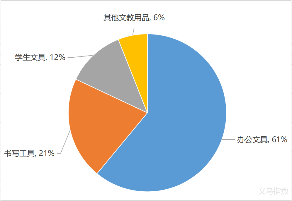 From the perspective of market share in the sub-categories, the market shares of the four major categories of office stationery, writing tools, student stationery and other educational and cultural supplies are 61%, 21%, 12% and 6% respectively.