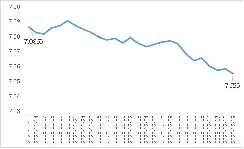 On December 19th, the exchange rate of the US dollar against the Chinese yuan was around 7.1 yuan. The average monthly exchange rate of the US dollar to the Chinese yuan in November 2025 was 7.0848, indicating a weakening of the US dollar against the Chinese yuan. At its December interest rate meeting, the Federal Reserve announced a 25 basis point cut in the federal funds rate (to a range of 3.50% to 3.75%), which has led to continuous pressure on the US dollar.