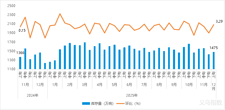 Steel inventory increases: According to data from the China Iron and Steel Association, by the first ten days of December 2025, the steel inventory of key steel enterprises reached 14.75 million tons, a 3.3% increase compared to the previous period. Compared with the beginning of 2025, it has increased by 19.2%. It decreased by 4.8% compared with the same period last month.