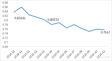 On November 30th, the exchange rate of the RMB against the Brazilian real was around 0.759 yuan. The RMB generally showed a trend of first appreciating and then weakening against the real. Since 2022, the Central Bank of Brazil has maintained the benchmark interest rate Selic at a high level of 15%, leading among major economies. High interest rates combined with the relatively stable macro environment in Brazil have made the Brazilian market continuously attractive to foreign capital. Investors maintain a certain level of confidence in the Brazilian market, which supports the stability of the real exchange rate.