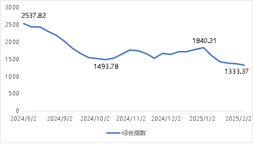 2025年2月7日,宁波出口集装箱运价指数(NCFI)报收于1333.37点,较上周下跌2.9%。近一个月内,大部分航线的运价都大幅下降。