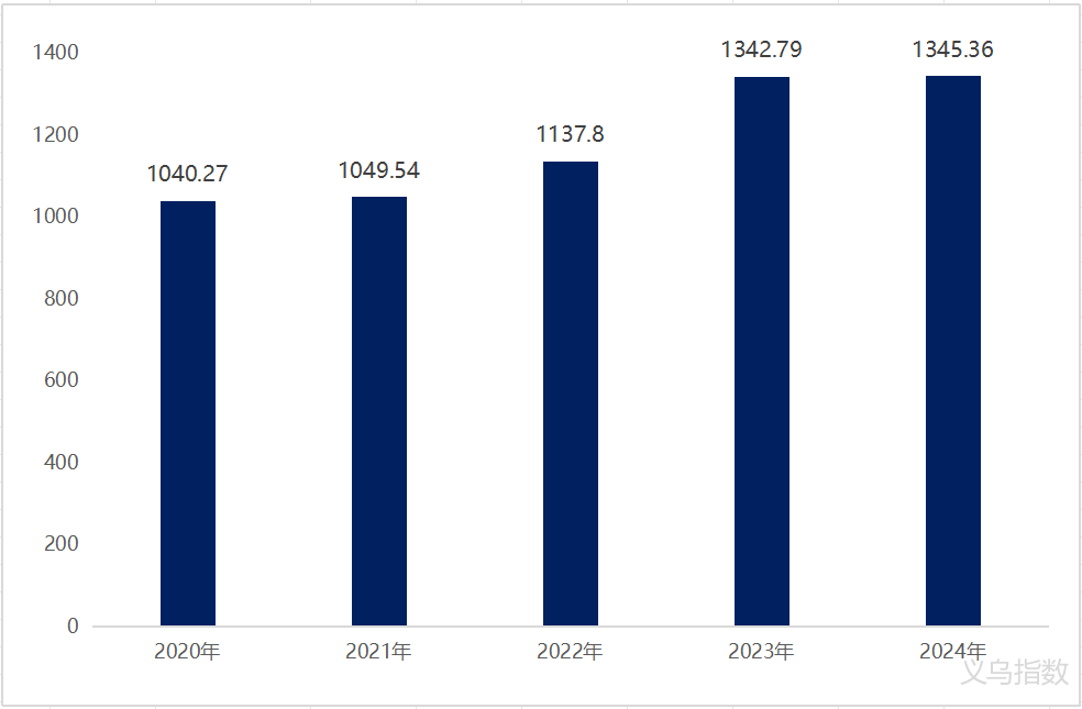 据义乌指数监测,自2020年以来,义乌市场的厨卫五金类景气指数整体呈现平稳上升态势。从2020年的1040.27点攀升至2024年的1345.46点,涨幅达29.33%。