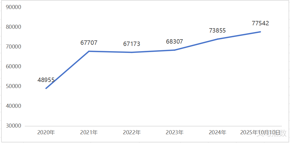 2020-2025年10月10日国内现货铜均价(单位:元/吨)