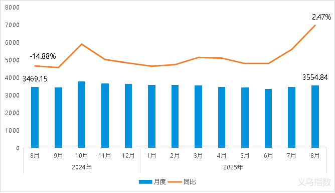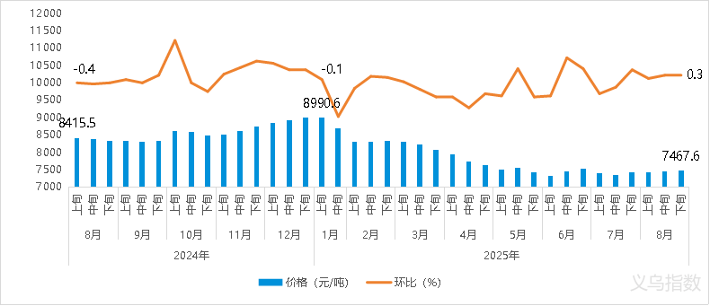 2024年8月-2025年8月国内钢材综合平均价格指数