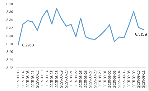 9月11日美元对人民币的汇率在7.1元左右,2025年8月美元/人民币的月平均汇率为7.1309,美元相对于人民币走弱。美国经济数据喜忧参半,就业和通胀数据存在不确定性;美联储内部货币政策分歧大,市场对9月降息预期升温等因素共同影响美元汇率下跌。