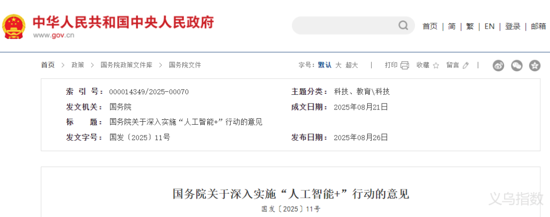 6.国务院印发《关于深入实施“人工智能+”行动的意见》
