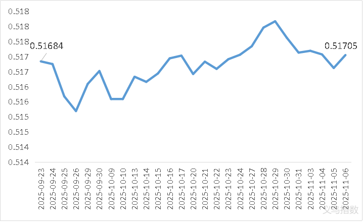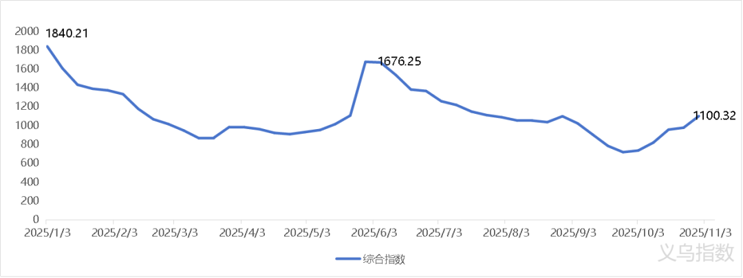 宁波舟山港承接了大量义乌小商品的出口业务,是义乌重要的出海口。据义乌指数最新监测,2025年10月31日,宁波出口集装箱运价指数(NCFI)报收于1100.3点,较9月末上涨53.4%。10月,部分航次停航运力收缩,加之中美经贸磋商在多领域达成共识提振市场,运价延续上涨趋势。