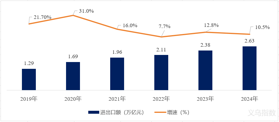 2024年,我国跨境电商进出口总额达2.63万亿元,同比增长10.8%,超同期我国外贸整体增速1倍以上;
