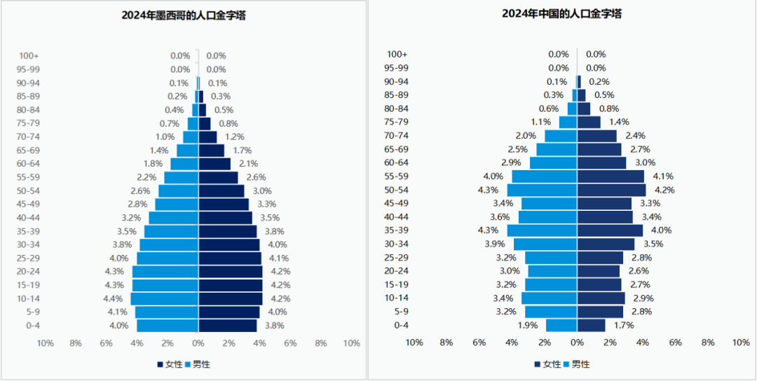 2024年,墨西哥拥有1.3亿居民,位列全球第十大人口国家,人口增速为0.9%。