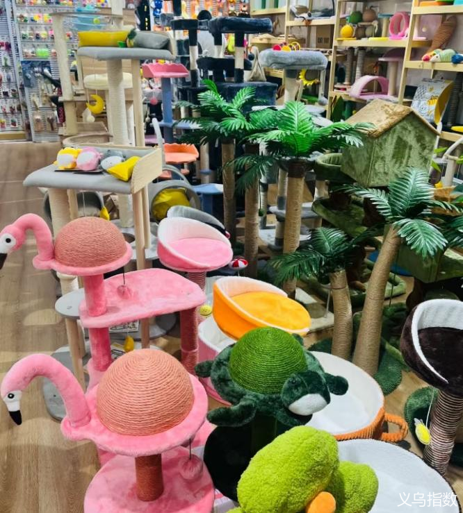 义乌市场成为目前国内最大的宠物用品专业市场,经营单品数量超3万种,全方位负责宠物“衣食住行用”。
