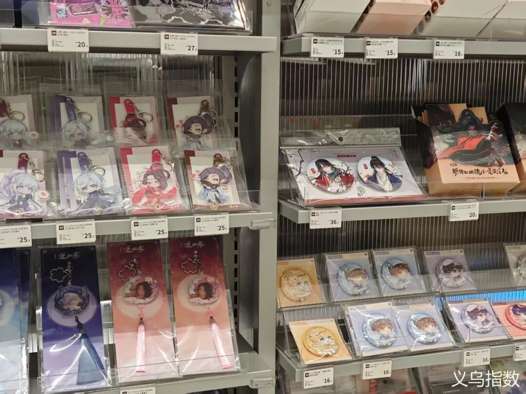 近年来,义乌的二次元产业逐步向“谷子经济”转型。目前,国际商贸城内各类“谷子”经销商已达百余家,涵盖徽章、立牌、文具、生活用品等多个品类。