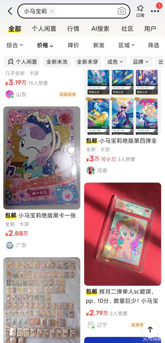 二手市场的小马宝莉卡牌 图源:闲鱼