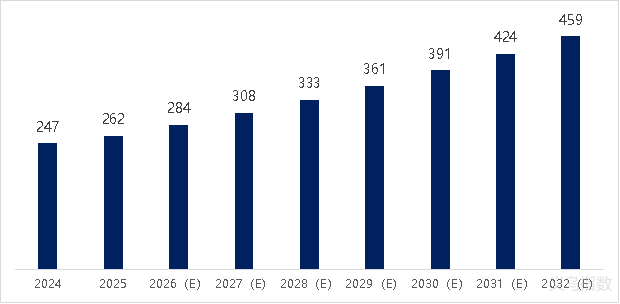 2024-2032年全球围巾市场规模(亿美元)