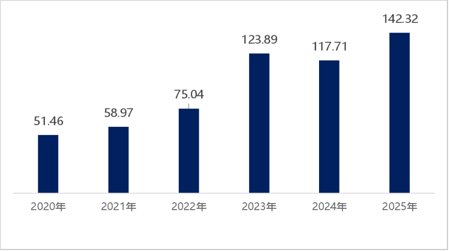2020—2025年中国对乌兹别克斯坦的出口额(亿美元)