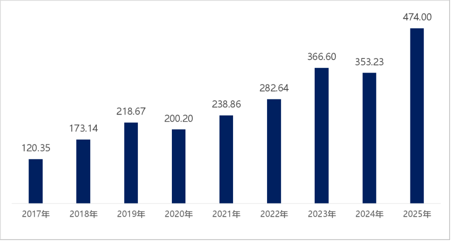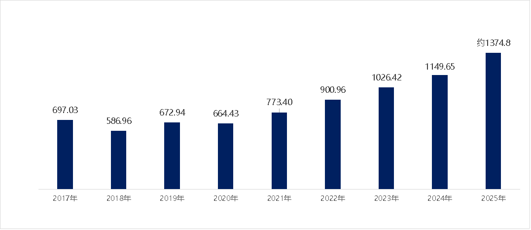 2017-2025年乌兹别克斯坦进口额(亿美元)