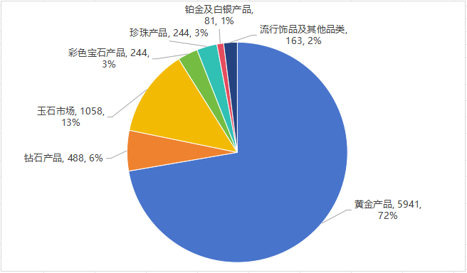 2025年中国珠宝首饰行业细分品类市场规模及占比情况(亿元,%)