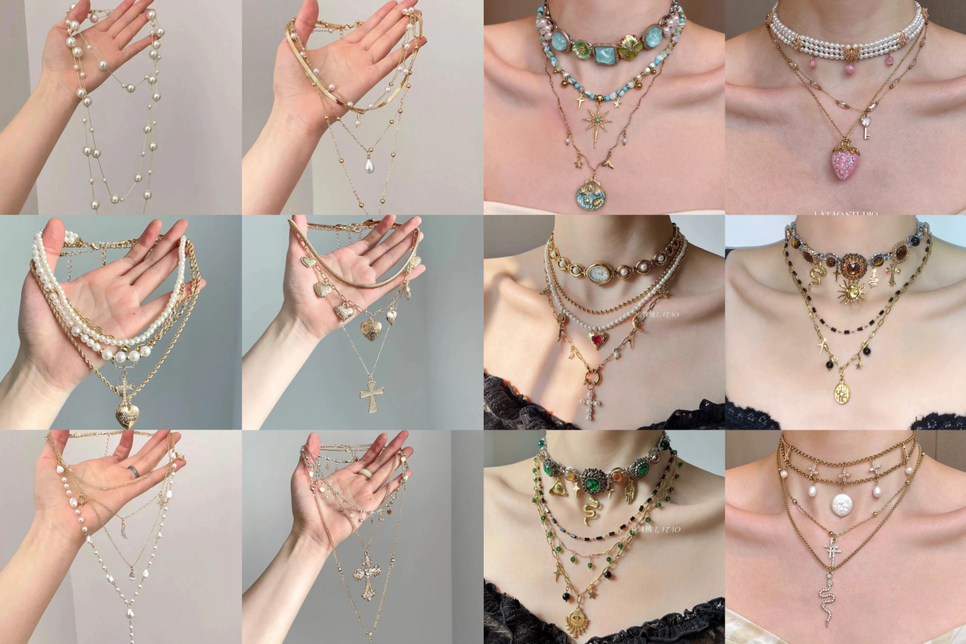 饰品在穿搭体系中的角色持续强化。随着整体时尚消费理念的变化,饰品逐渐成为穿搭体系中的不可或缺的组成部分,在部分风格中承担审美表达的核心功能,带动其从边缘品类向核心品类转变。如近年来流行的“多层叠戴”“极繁风格”等时尚趋势,耳饰、项链等饰品在整体造型中的权重显著提升。